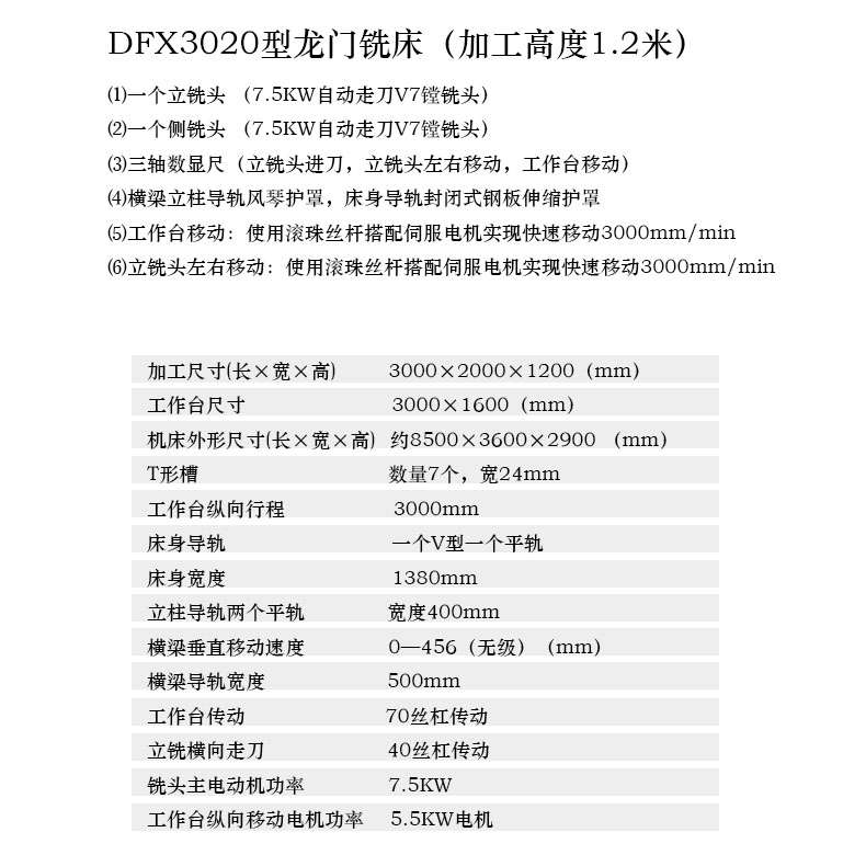 数显DFX3020龙门铣